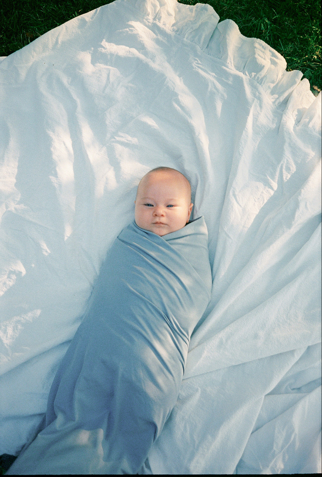 Our Jean swaddle is a fun, vintage-inspired muted blue.